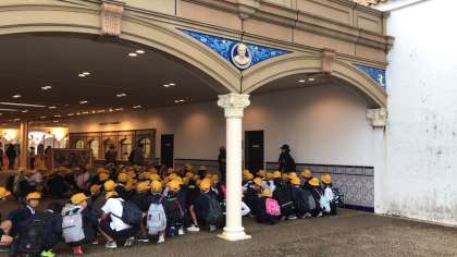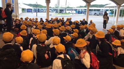 スペイン村に予定通り着きました。着いた時は雨が止んだのですが、しばらくすると、雨と風が激しくなってきました。子どもたちは元気でこんな状況でも楽しんでいます。(校長)