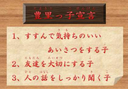 「子どもたちの手本となり、このような子ども・豊里っ子を育てます」という宣言でもあります。