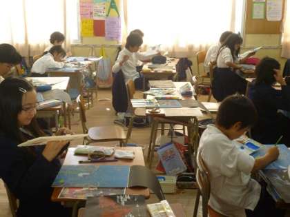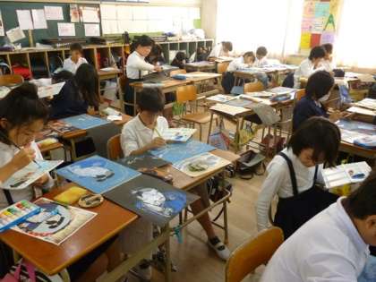 作品展に向けて、5年生の作品制作、