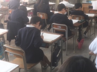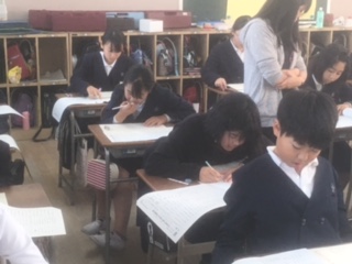 11月8日(金)、漢字検定が行われました。時間は、10:00〜11:00までの1時間です。教室の掲示物をはずしたり、模造紙でおおったりして漢字が見えないように教室環境を整えて試験をしました。みんな真剣です。頑張っていました。