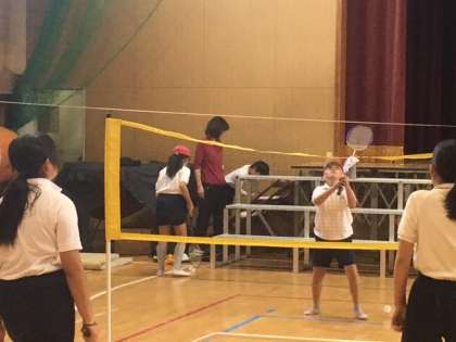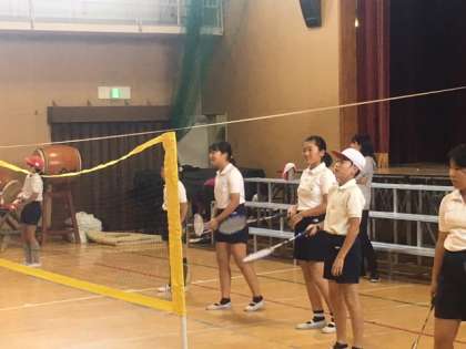 次は、バドミントンクラブの紹介です。ネットをはさんで、シャトルを打ち合っていました。中には、上手にラリーを続けている子もいました。無理に決めようとするよりも、より長く続けられるようにしていました。みんな上手です。