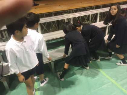 学習発表会の準備〜いす出し、ひな壇設置〜