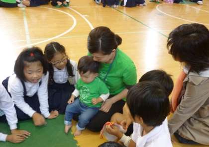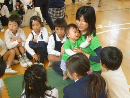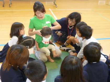 3時間目、体育館で、2回目の「赤ちゃん先生」を実施しました。