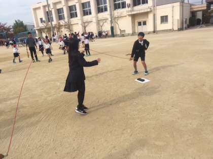11月18日(月)、15分休憩時に体力づくりの一つとして取り組んでいる『全校遊び』がありました。縦割り班のA1〜20、B1〜10班の縦割り班で遊びました。全校児童の半分の児童が遊びました。残りの児童は、金曜日です。