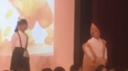 2年生は、劇『日本むかし話ツアー』でした。むかし話を、歌やお笑いを交えながら、楽しく紹介してくれました。