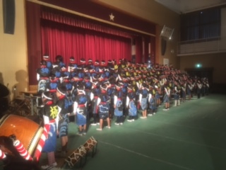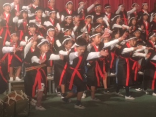 4年生は、歌・群読『お祭り』です。群読の声はとても大きく迫力があり、講堂中に響き渡っていました。群読・歌・合奏・衣装すべてがお祭りの世界でした。