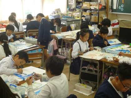 先日、淀川河川敷にスケッチに出かけた4年生。