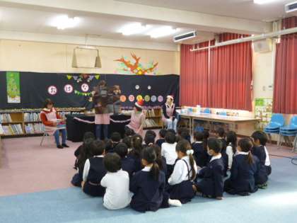 12月5日(木)2・3・4時間目、1年生を対象に絵本ばたけさんによる「おはなし会」がありました。プログラムは以下の通りです。