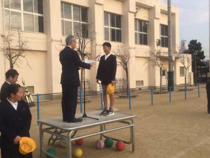 まず、豊里連合こども会の表彰式がありました。「第2回新春井高野大会」「2020オール鶴見大会」の2つの大会においていずれも準優勝という成績をおさめました。日頃の練習の成果ですね。おめでとうございます。