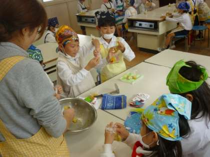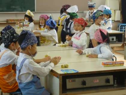 先日、豊里農園で収穫したサツマイモを使っての調理実習?????
