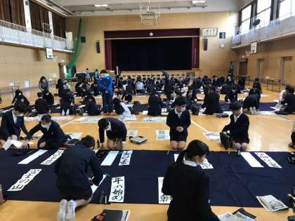 昨日の4・5年生に引き続き、今日の2時間目に6年生の書き初めを行いました。