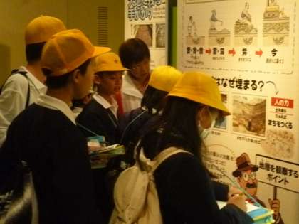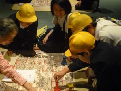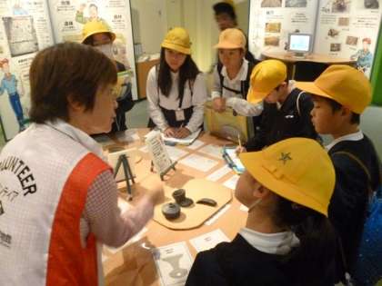 ○真剣な表情で、学芸員さんの説明を聞く子ども達。