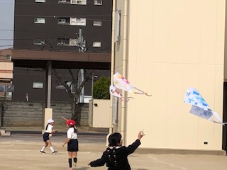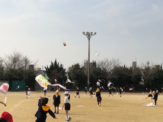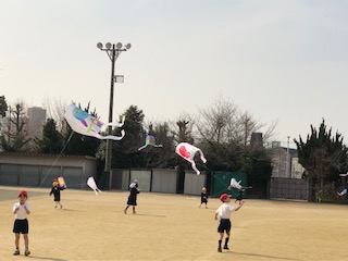 2月3日(月)、生活科で製作していた凧を運動場であげました。