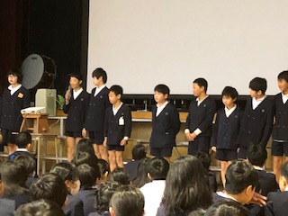 今日の児童集会は放送委員会の発表でした。豊里小学校でおきている危険なことにつてニュース形式で分かりやすく伝えていました。