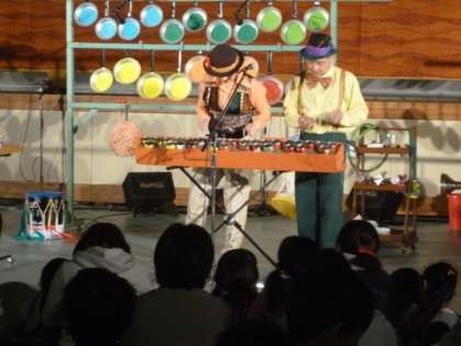 空き缶や牛乳パック、フライパンやバケツなど自分たちの周りにあるものが楽器に早変わり。単に、音が出るだけではなく、音階をとり、きれいなメロディを奏でます。