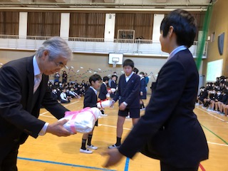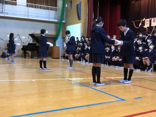 在校生から6年生へ色紙のプレゼントです。