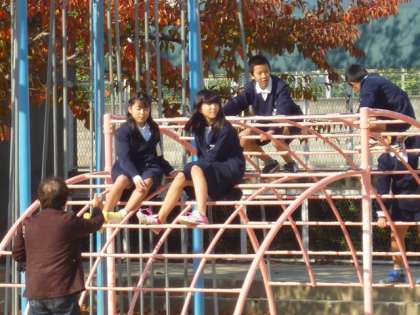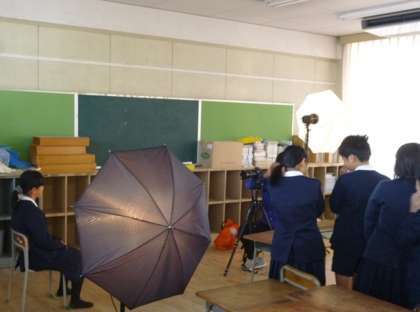 個人写真は児童会室で、グループ写真は好きな場所で撮影です。