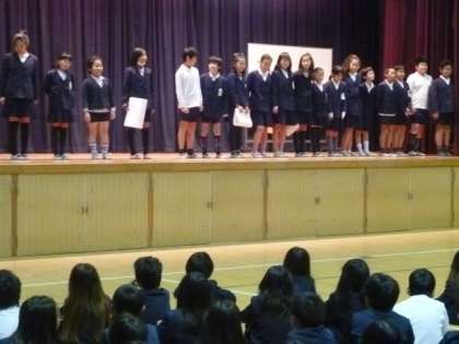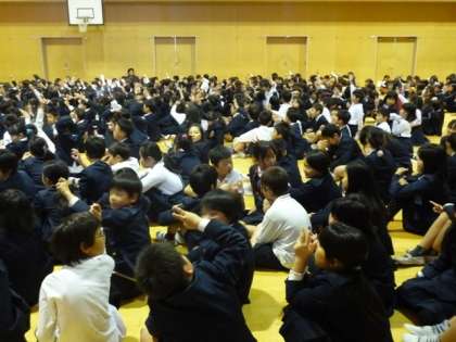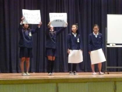 今朝は体育館での児童集会、「美化委員」の発表です。