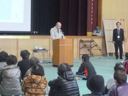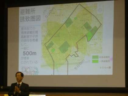 地震や津波が起こった時の、この『豊里地域』の強み・弱みを映像を使って細かに説明していただきました。