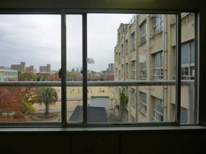 3階にある「なかよし3」の教室の窓は10cmほどしか開閉しません。