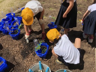 2年生は、トマトの苗をうえました。