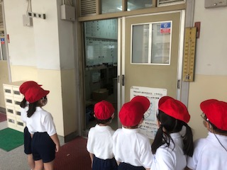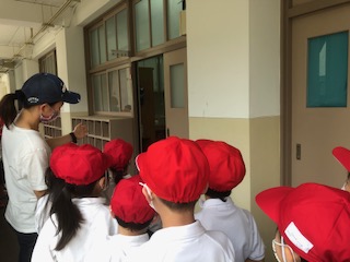 運動場に出る前に、職員室や校長室、保健室へ行きました。
