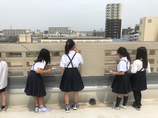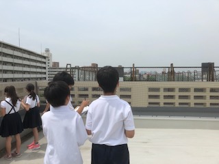 校舎の屋上に上がることができるのは、6年間でこの時だけです。