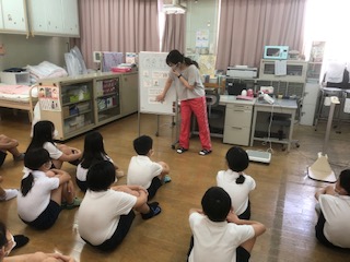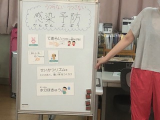 発育測定をする前に、「感染予防」のことで、保健指導を行いました。