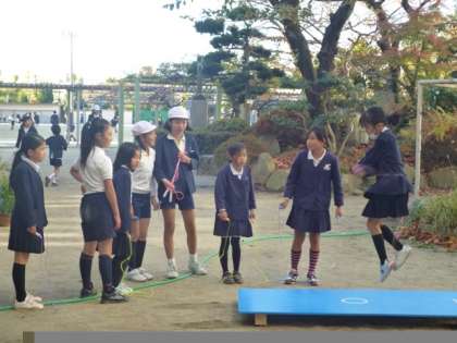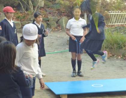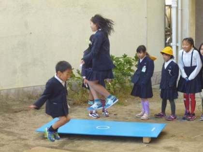 いつもたくさんの児童の列ができる、なわとびの「ジャンプ台」