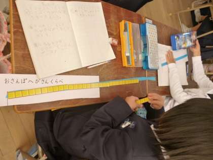 「私のへびの長さは▲▲をつかって、○○個分です。」と発表していきます。
