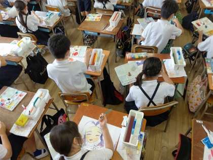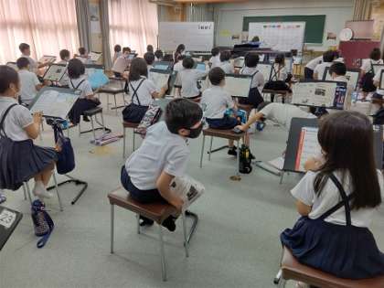 音楽室では曲を聴いています。