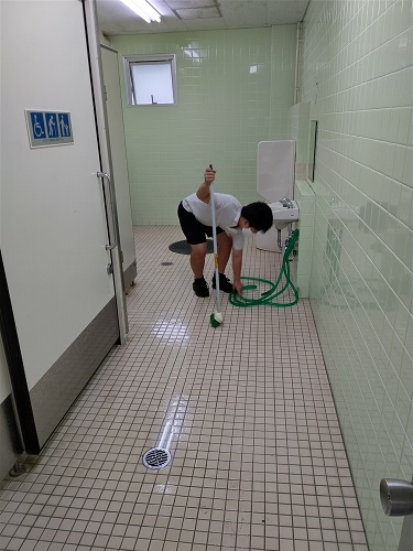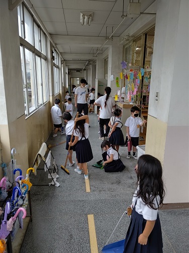 みんなで掃除をします。
