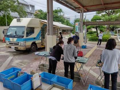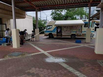 本日の午前中に、自動車文庫が正門付近で行われました。
