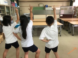 ダンス・ミュージッククラブは、6年生が下級生にダンスの振り付けを教えていました。一生懸命踊っています。