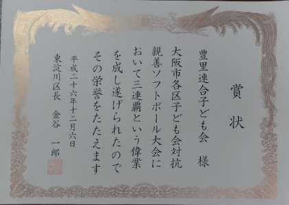 三連覇の偉業を祝して 〜豊里連合ソフトボールチーム〜