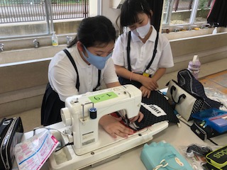 6年生は、家庭科でナップザックを作っています。