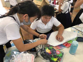 また、ボビンのセットで困っいて、友だちと協力して解決させようと頑張っている子もいました。