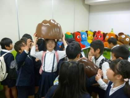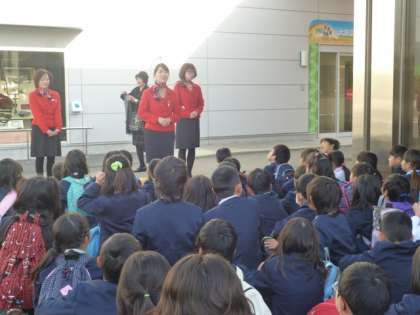入館前に見学説明を受ける子ども達と見学終了後、係り員に質問を浴びせる(笑)子ども達。