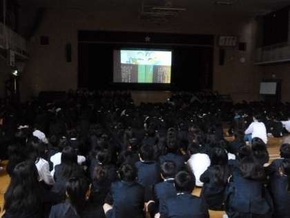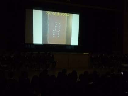 寒さがこたえる体育館の中でしたが、みんなしっかりとその読み聞かせに耳を傾けていました。