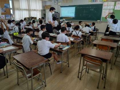 3クラスを4つに分けて、習熟度別少人数授業をしています。