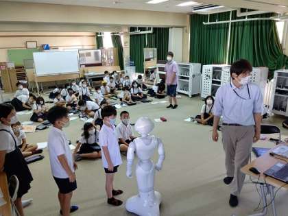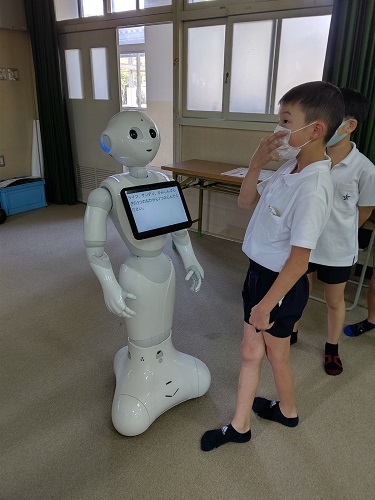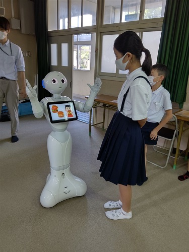 「豊里のまち」の飲食店や公園など、ペッパーを通じて紹介しています。