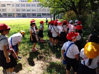 芝生のところの木陰を利用して、昆虫や植物の観察をしています。