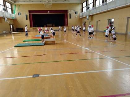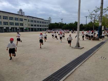 運動場の授業が終わり、みんな元気に教室へ走って戻ってきます。