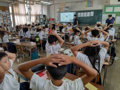 C−NETの先生と「What time is it?」の学習です。