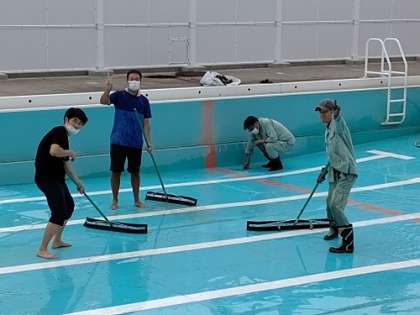 今年度はプールの授業が行われませんでしたが、来年度のために、汚れていたプールをきれいに掃除しました。