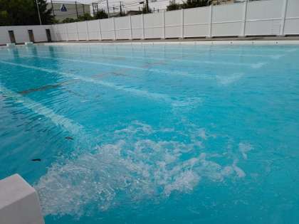 プールがきれいになり、水でいっぱいに満たされました。