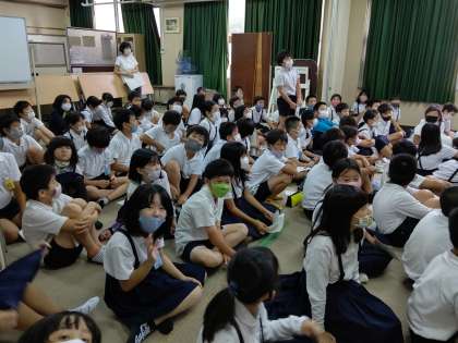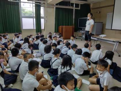 多目的室に4年生の全員が集まり、先生より遠足の説明をしてもらいました。