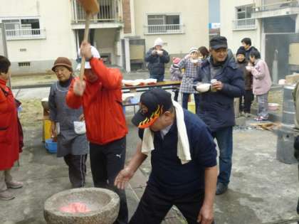 1月11日(日)、豊里第2町会のお餅つきに参加しました。