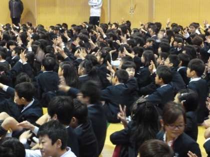 木曜日の朝は児童集会 〜投げたものはなんでしょう〜