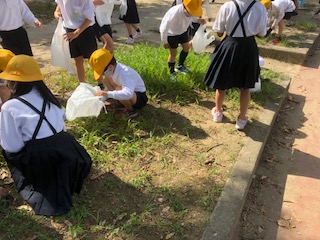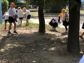 3時間目、2年生が中央公園へどんぐり拾いに行きました。